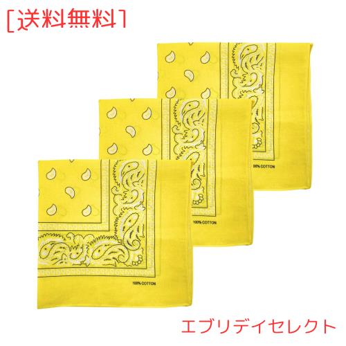 ◆商品名:[MDSTYLE] 3枚セット バンダナ コットン 100% 大判 56cm x 56cm スカーフ 三角巾 ハンカチ ペイズリー (黄色 3枚)