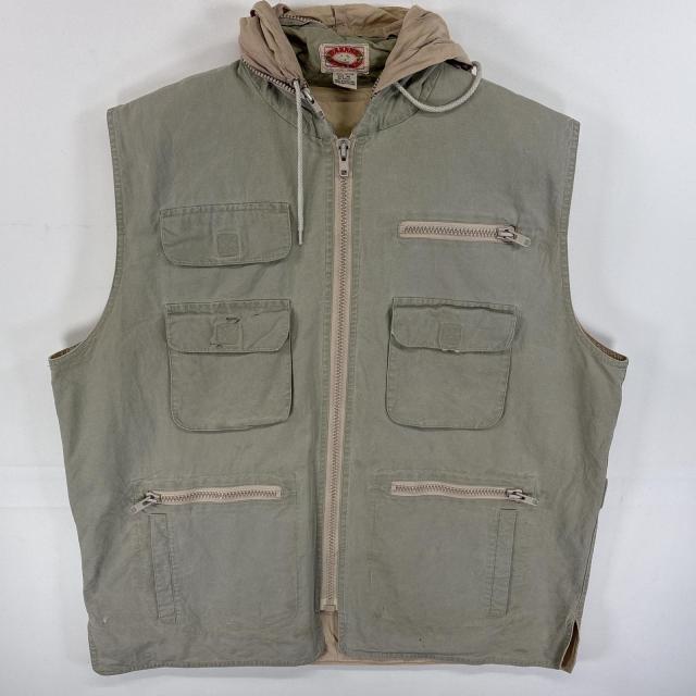 古着 80s/80年代 ヴィンテージ バナナリパブリック Banana Republic ベスト フラップポケ フード付き サファリベスト XL ベージュ 無地