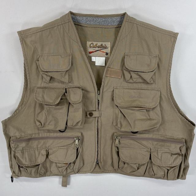古着 80s/80年代 ヴィンテージ カベラス Cabelas ベスト フィッシングベスト フラップポケ ワンポイント ロゴ 刺繍 L ベージュ 無地