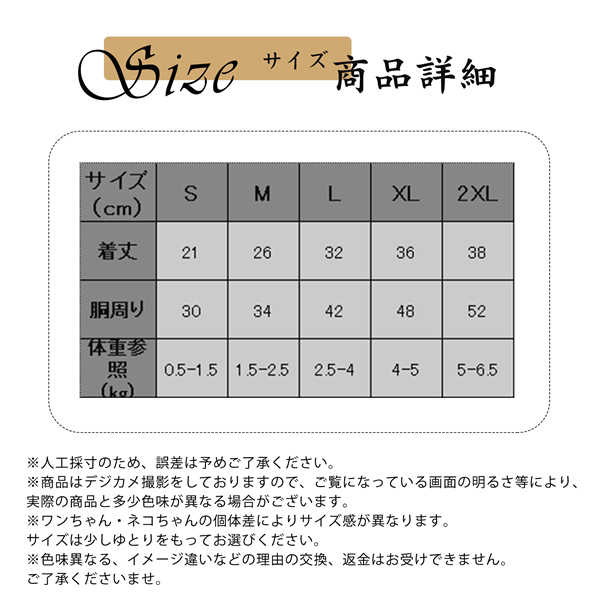 ※ワンちゃん・ネコちゃんの個体差によりサイズ感が異なります。サイズは少しゆとりをもってお選びください。