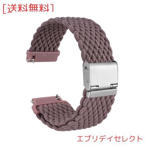 [WOCCI] 20mm 時計バンド ナイロン 時計ベルト 無段階調整 スマートウォッチ交換用バンド ローズパープル/シルバーバックル