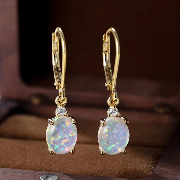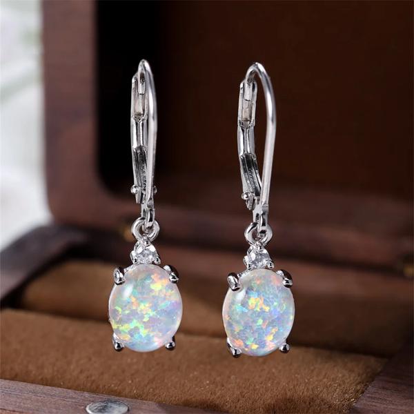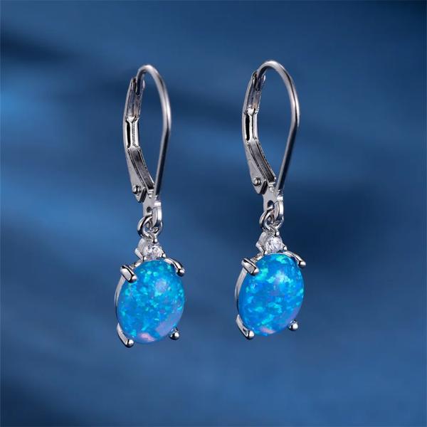 ホワイトブルーオパールオーバルストーンフープイヤリング女性のためのリアル 925 スターリングシルバーウェディングジュエリー婚約アクセサリー