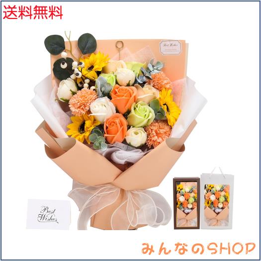 【大人気なソープフラワー 】:ソープフラワーは花びら一枚一枚が香りのよい石鹸からつくられた、ほのかに香る観賞用のお花です。生花と違って水やりの必要もなく枯れることがありません。ブリザードフラワーとも違ってほのかな香りを楽しめます。花粉等も無いためアレルギーの原因となることもありません。アイディアに満ち溢れ、柔らかな質感、鮮やかな色合いと雰囲気を長い間お楽しみいただけ、彼女、奥様、母の日のプレゼント、誕生日プレゼント、結婚祝い、卒業式など様々なシチュエーションにピッタリです! 感謝やお祝いの事の贈り物として目を引くおしゃれグッズです。