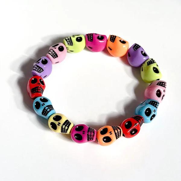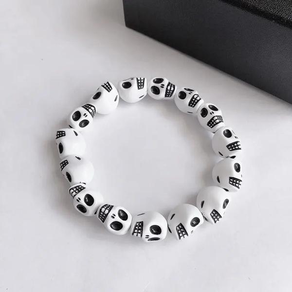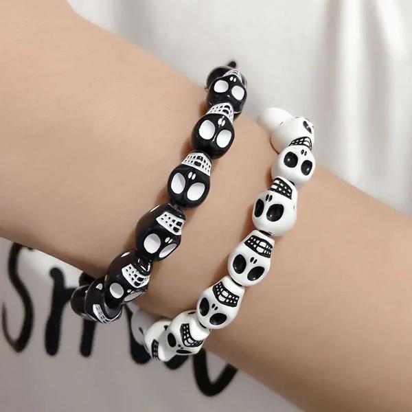 パンクゴススカルスケルトンブレスレット女性男性ヒップホップ弾性ビーズブレスレットバングル手作りハロウィンジュエリーギフト