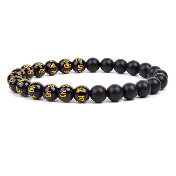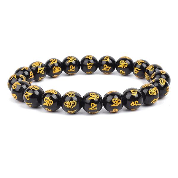 風水-黒曜石とビーズのブレスレット,幸運の癒しのビーズが付いた黒いブレスレット,マットな形