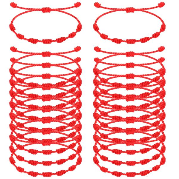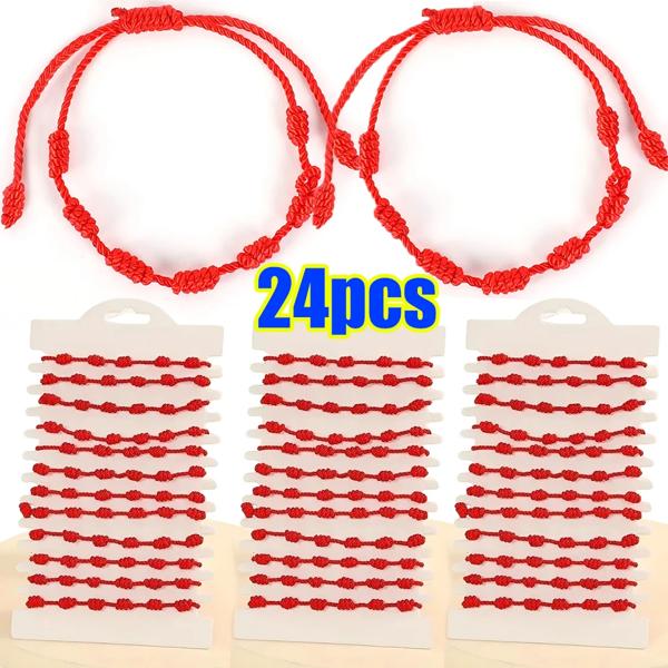 保護のための赤いストリングブレスレット,ラッキーブレスレット,手作り,成功,カップル,7ノット,24個,2個