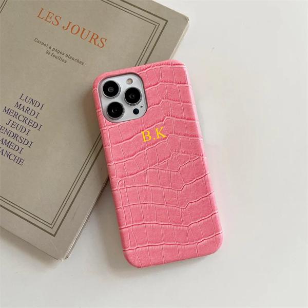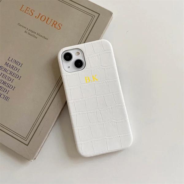 パーソナライズされた名前のゴールドレターレザーケース,iPhone 13,12,11,14,15,16 pro,xs max,x,xr,7,8 plus用の豪華なクロコダイルカバー