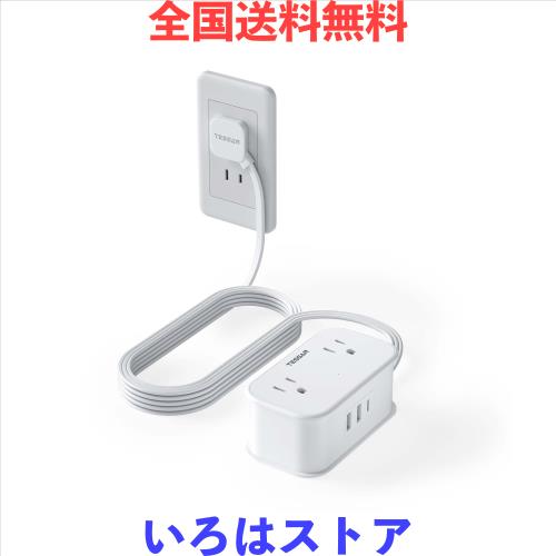延長コード 2m 電源タップ USB付き たこあしコンセント 薄型プラグ TESSAN 4個口 1個タイプC と2個タイプA コンセントタップ 薄型 タコ足