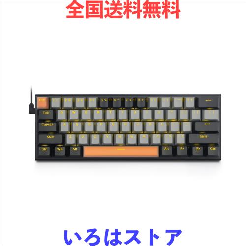 e元素メカニカルキーボード61キー 赤軸を採用のゲーミングキーボード 黄色のLEDバックライト付き 60%小型コンパクトキーボード USB有線