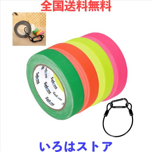 ◆商品名:Selens ガッファーテープ UV蛍光 24mmx23m ウエストホルダー付き 4本セット(ピンク/オレンジ/イエロー/グリーン) ビデオ/パーティーの撮