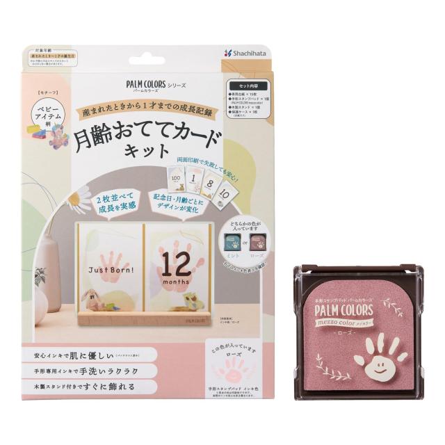 シャチハタ PALM COLORS シリーズ 月齢おててカードキット ベビーアイテム柄 インキ色 ローズ 手形スタンプパッド HPSC-B/H-RP