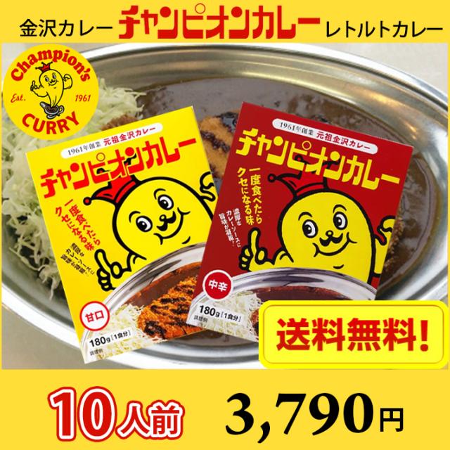 【送料無料】10人前 金沢カレー チャンピオンカレー レトルトカレー 甘口・中辛 選べる10食 (北海道 沖縄 離島は別途送料1200円かかります) / カレー カレールゥ ルー 金沢カレー 濃厚 おいしい レトルト