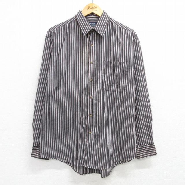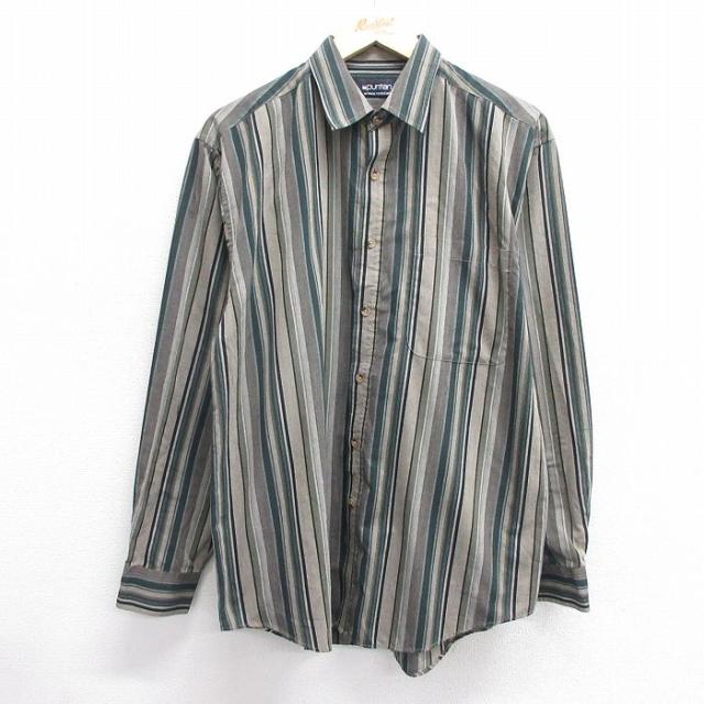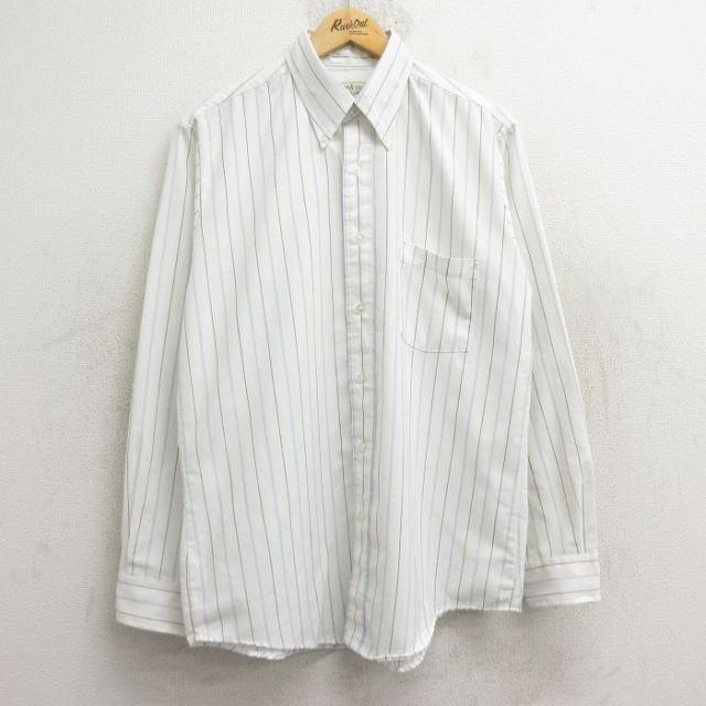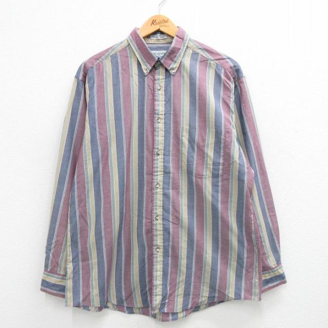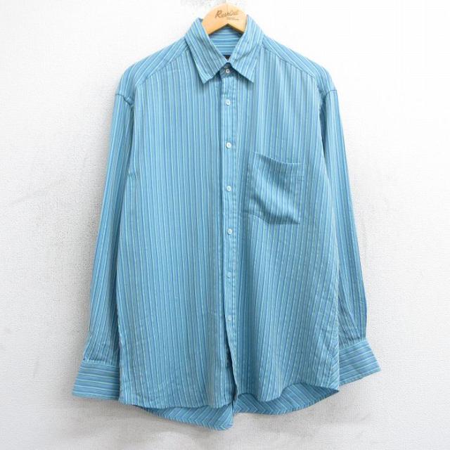 古着 長袖 シャツ メンズ 00年代 00s ボタンダウン 水色他 ストライプ Lサイズ 中古 トップス 中古 古着