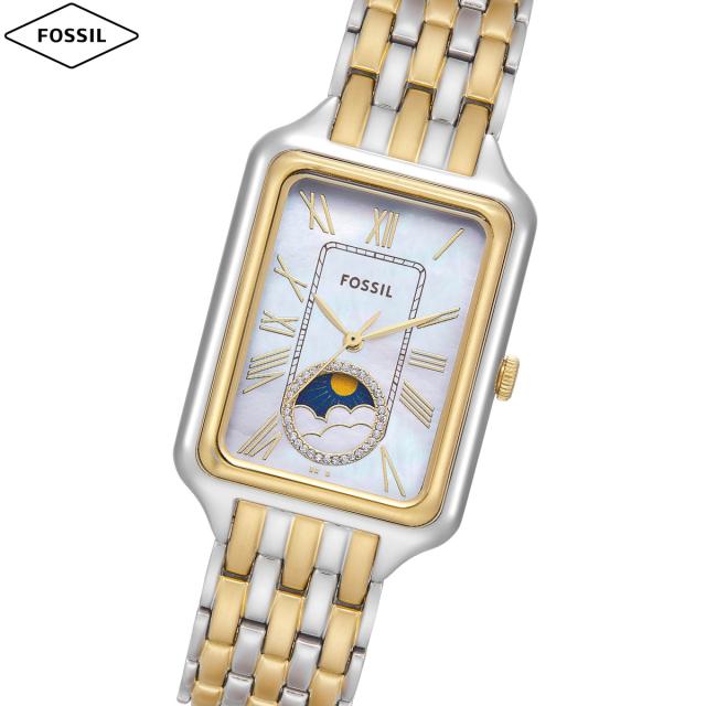 生まれ変わった正真正銘のアイコン、RAQUELウォッチ。スリムなレクタングル形ケースとツートーンのステンレススチールブレスレットがタイムレスで洗練された魅力を演出します。輝くホワイトマザーオブパールのダイヤルがエレガントな魅力を放ち、クラシックなサンムーン表示付き多機能ムーブメントが洗練された機能性を提供します。ヴィンテージ風でありながら新鮮でモダンな魅力をたたえた、毎日使いたくなるクラシックなアイテムです。【フォッシル FOSSIL 2025 新作】