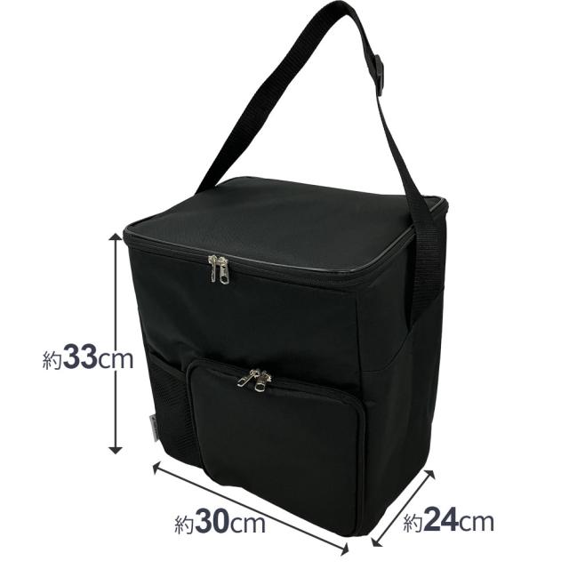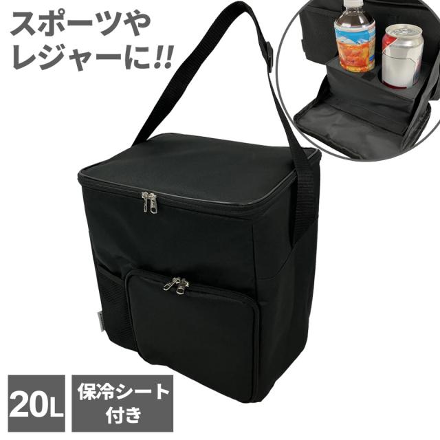 クーラーバッグ 20L ブラック U-Q1120 | レジャーバッグ 保冷 2Lペットボトル 6本 350ml缶 30本 ポケットつき カップホルダーつき 折りたたみ コンパクト 染みにくい スポーツ 観戦 運動会 キャンプ