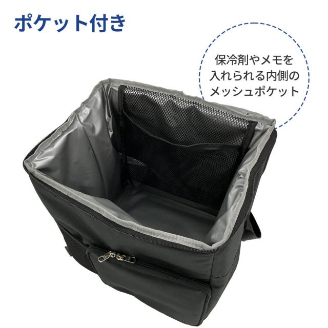 保冷剤ポケット付き内側には保冷剤を入れるメッシュポケット付き。