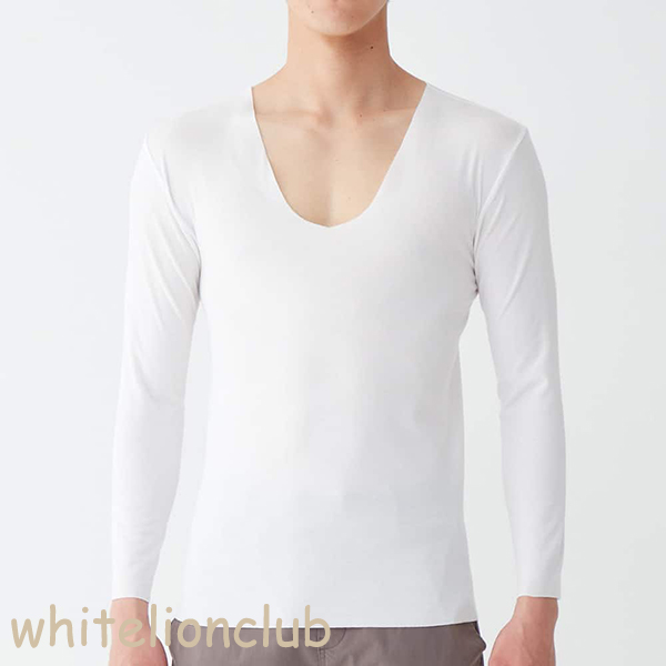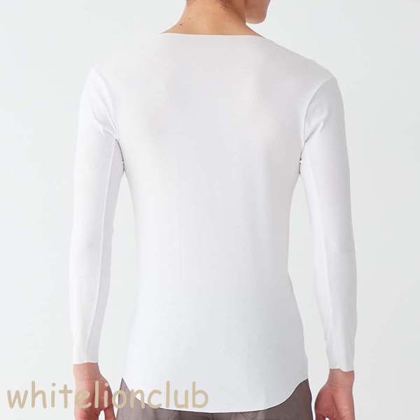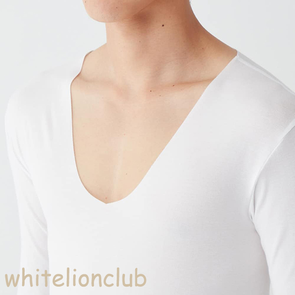 ドレスシャツやポロシャツの襟元からインナーが覗きにくいネックライン仕様と、