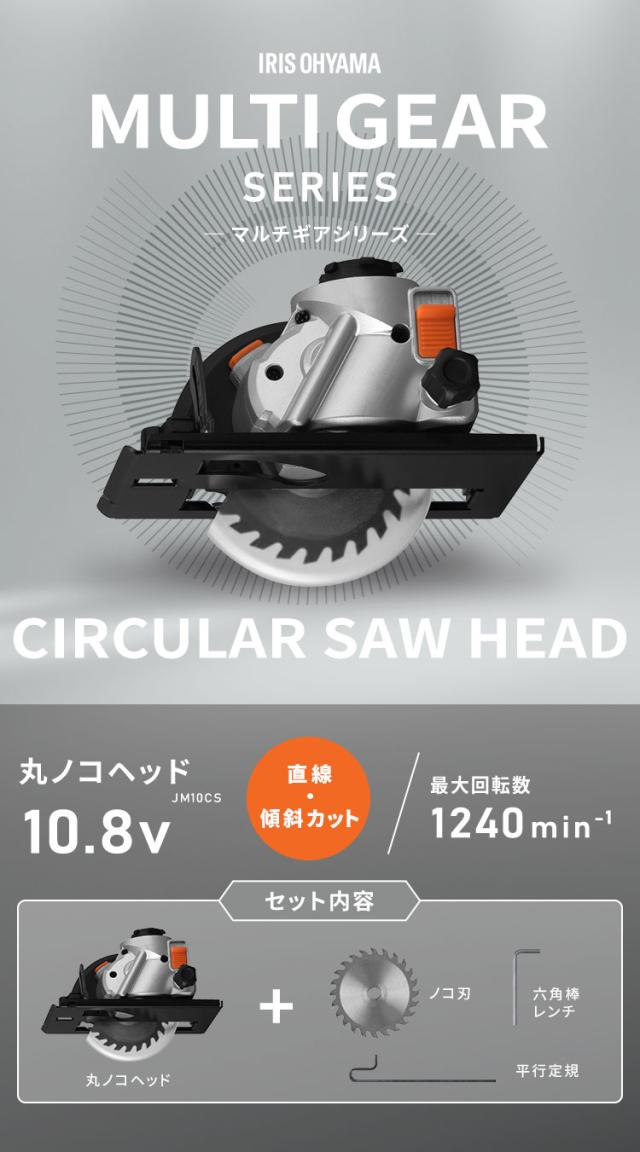 電動丸ノコ 丸鋸 10.8Vマルチギア専用ヘッドパーツ 小型 充電式マルチツール 角度調節 切込深さ 丸のこ 丸ノコギリ コードレス DIY 電動工具 初心者 アイリスオーヤマ JM10CS *