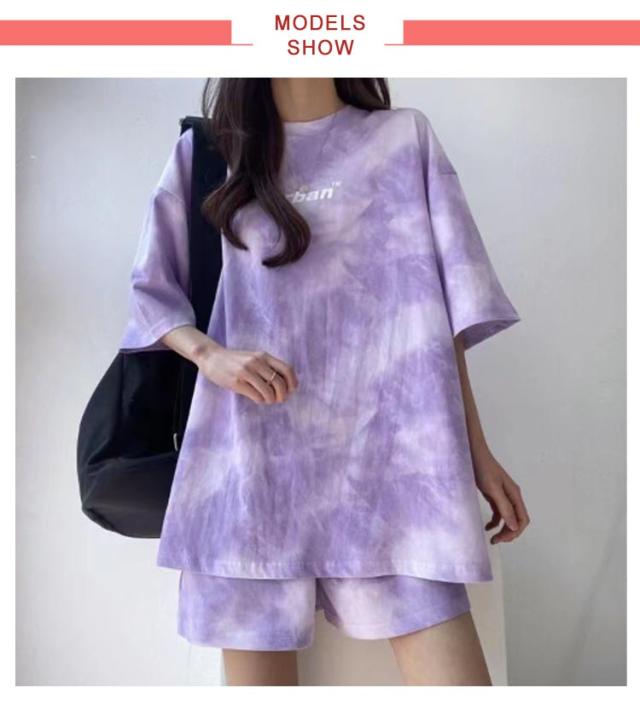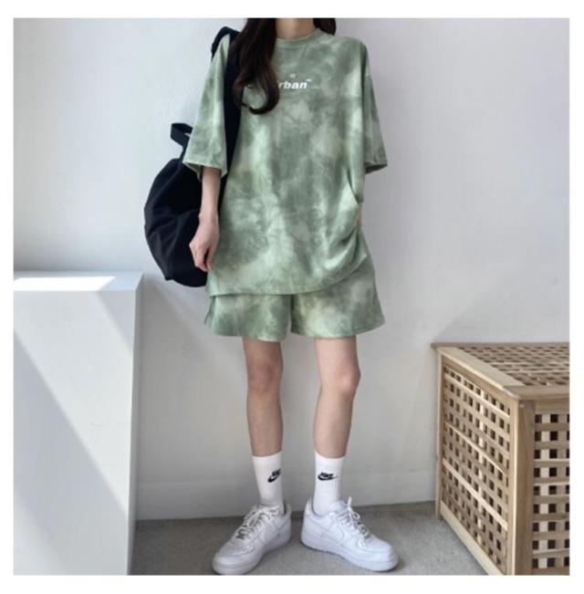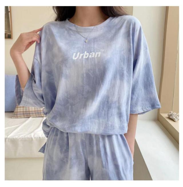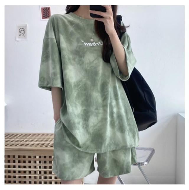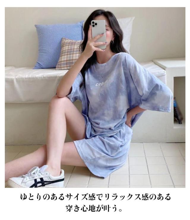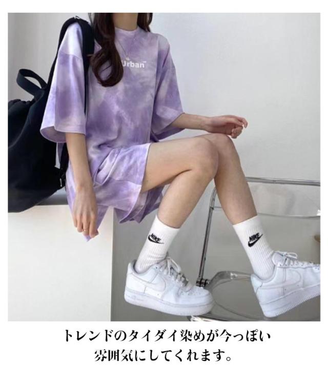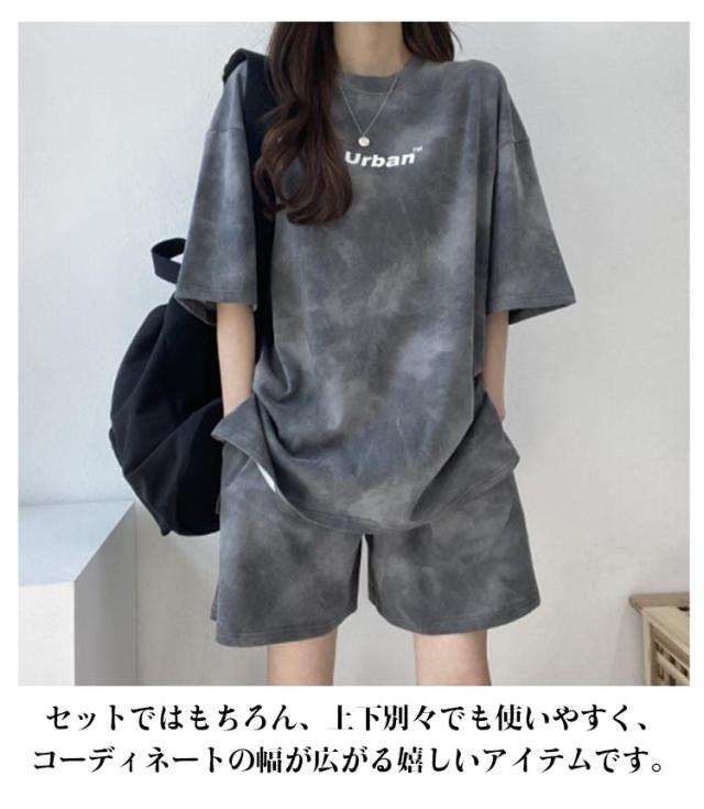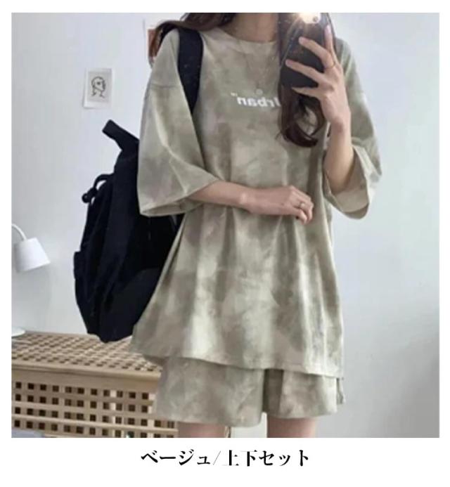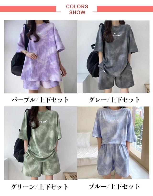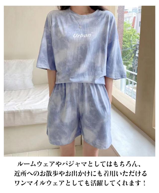 tシャツ 上下セット ルームウェア レディース セットアップ 半袖 ショートパンツ 2点セット 体型カバー タイダイ染め ハーフパンツ 部屋着 寝巻き ナイトウェア 薄手 可愛い パジャマ 大きいサイズ スポーツウェア 送料無料