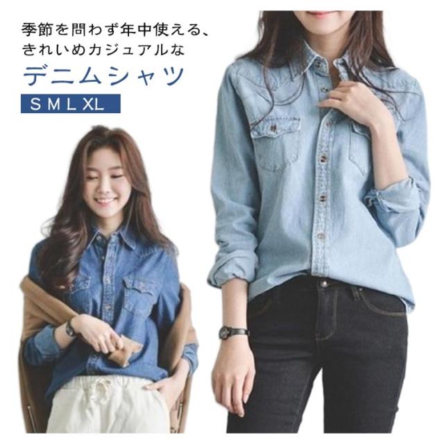 ダンガリーシャツ デニムシャツ レディース ウエスタンシャツ 羽織 襟付き ボタンシャツ 前開き ウォッシュ加工 長袖 トップス ブラウス カジュアルシャツ ウエスタンデニム 20代 30代 40代 50代 大きいサイズ 春 秋