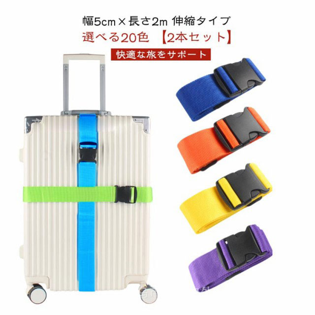 【自由に選べる2本セット】 スーツケースベルト 目印 おしゃれ 長さ2m 長さ調節 シンプル 旅行 スーツケース ベルト バンド 海外旅行 便利グッズ キャリーケース キャリーバッグ 十字 ロック 派手 目立つ 個性 かわいい ワンタッチ 二重 手荷物 結束バンド 幅5cm 送料無料