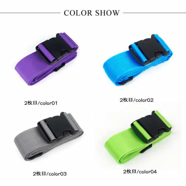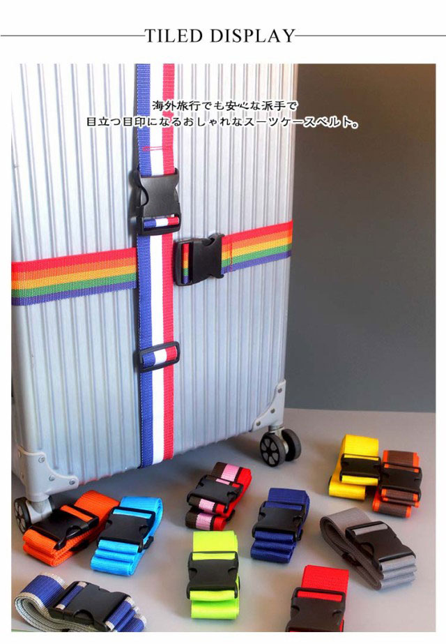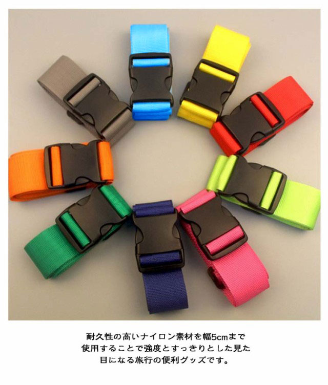 | 快適な旅をサポート スーツケースベルト 幅5cm×長さ2m 伸縮タイプ 選べる20色 【2本セット】 海外旅行でも安心な派手で目立つ目印になるおしゃれなスーツケースベルト。 耐久性の高いナイロン素材を幅5cmまで使用することで強度とすっきりとした見た目になる旅行の便利グッズです。 | |