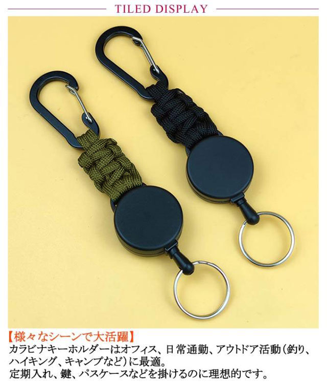 | 頑丈なリールキーホルダー、日常の通勤やアウトドア活動(キャンプ、釣りなど)にも楽々対応! 【誰でも楽に使える長さ65cm】内蔵されたスプリングと金属ワイヤーにより、最大65cmまで伸ばすことができ、使用後は自動的に戻ります。 鍵や定期入れを簡単に取り出せるリールキーホルダー。 【様々なシーンで大活躍】カラビナキーホルダーはオフィス、日常通勤、アウトドア活動(釣り、ハイキング、キャンプなど)に最適。定期入れ、鍵、パスケースなどを掛けるのに理想的です。 【紛失防止機能】カラビナ付きで、バッグやベルトループに簡単に取り付けられ、鍵や定期入れの紛失を防ぎます。きれいなデザインで、プレゼントにも最適です。 【持ち運びしやすい超軽量】わずか15gでアウトドアテイストのリールキーホルダーです。アウトドアなどに最適。 | |