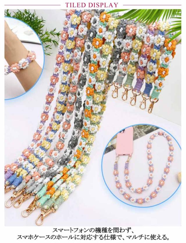 スマホストラップ 花 編み込み フラワーストラップ ロングストラップ 携帯電話ストラップ スマホショルダー ショルダーストラップ カメラストラップ 斜め掛け 肩掛け 首掛け スマートフォン ストラップ 推し活 落下防止 紛失防止 男女兼用 編み 手編み ハンドメイド 手作り