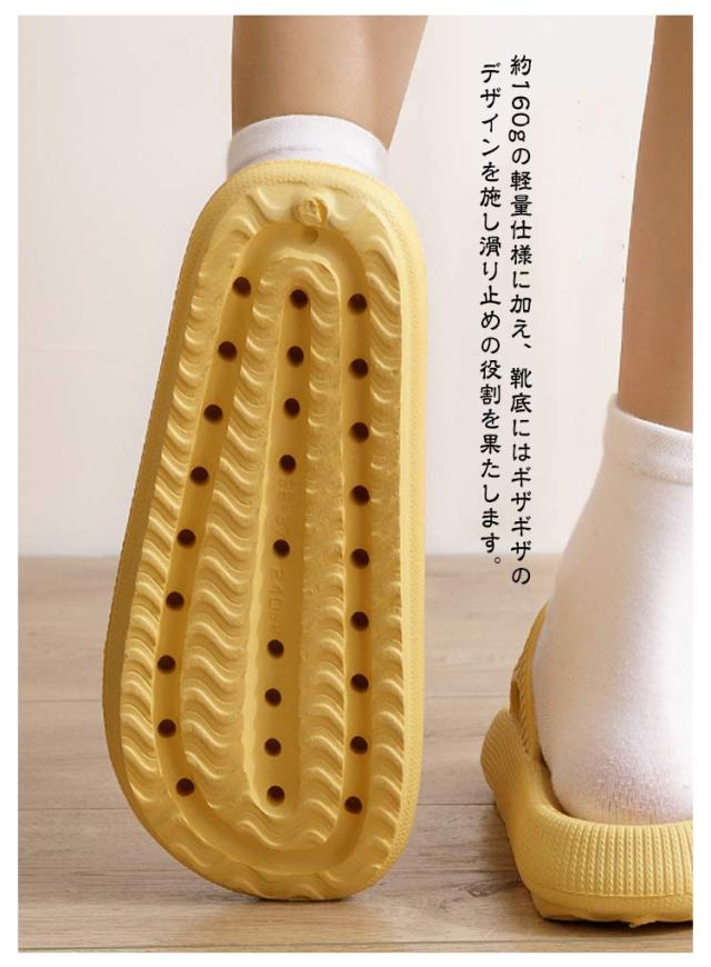 | 厚底クッションで疲れないベランダサンダル 23-27.5cm 厚底の濡れないおしゃれなベランダサンダル。疲れない、縮まないEVA素材が人気です。 ルームシューズやベランダサンダル、バススリッパなどさまざまな用途でご使用いただけます。 約160gの軽量仕様に加え、靴底にはギザギザのデザインを施し滑り止めの役割を果たします。 3cmの厚底で長時間履いていても疲れにくく、水回りで使用しても足が濡れにくいようになっています。 | |