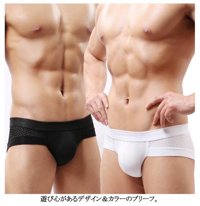 | 夏でも快適なセクシーなメッシュブリーフ2枚セット なんといってもフロント部分が【秘密のポケット】設計されてて 男性をしっかりとホールド&もっこりUPさせてくれます 遊び心があるデザイン&カラーのブリーフ バックスタイルはキレイなヒップラインを魅せられます | |