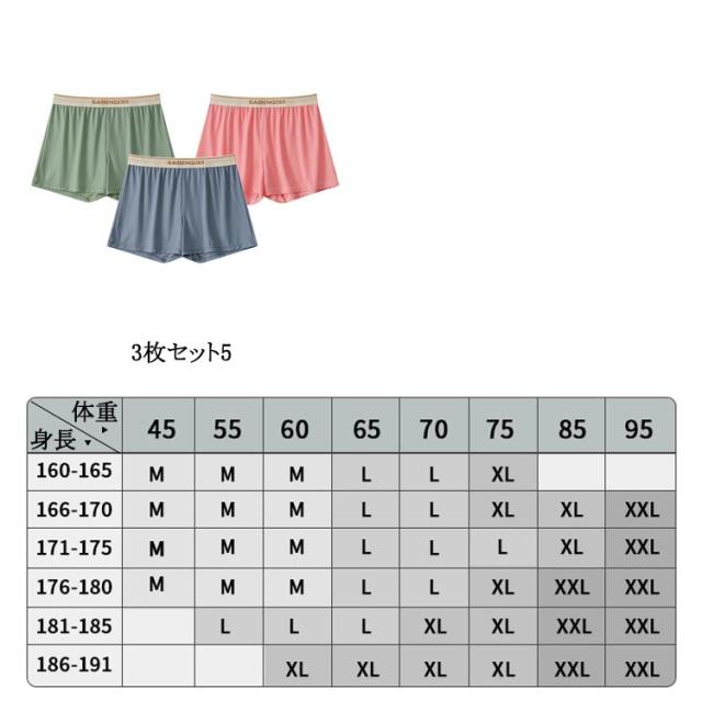 | 接触冷感ボクサーパンツ メンズ 3枚セット! さらっとした着用感と心地いいフィット感で、快適な履き心地のボクサーパンツ。 カラーとサイズの豊富な展開が魅力です。 友人・知人、同僚へのプレゼントにもOK! | |