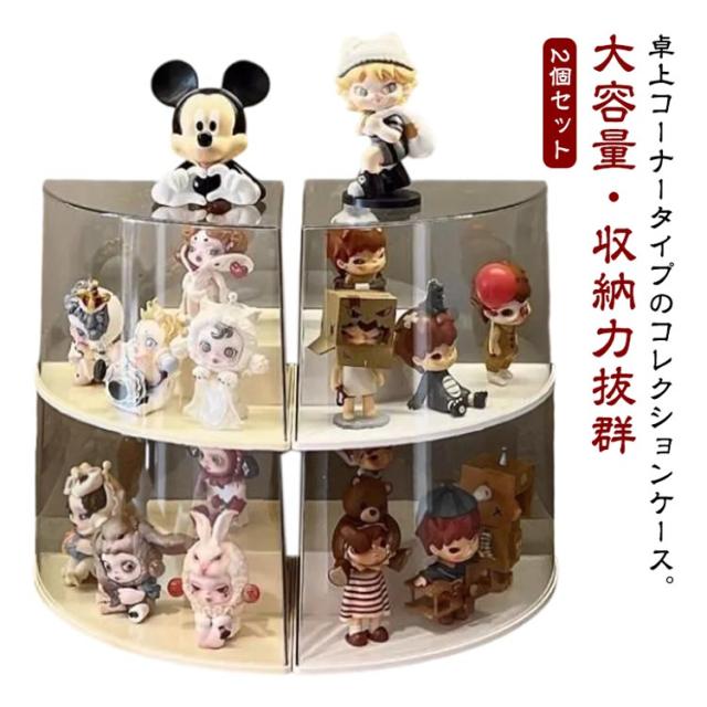2個セット コレクションケース 卓上 コーナー ディスプレイケース 積み重ね フィギュア棚 フィギュアケース クリア 小型 アクリル 透明 収納ボックス フィギュア 人形 ミニカー 収納ケース コーナー収納 コレクション棚 コレクションボックス おしゃれ クリアケース