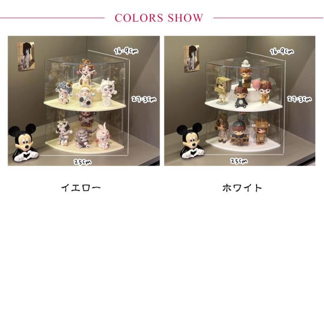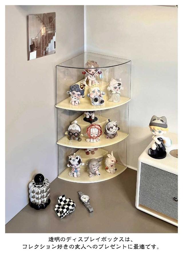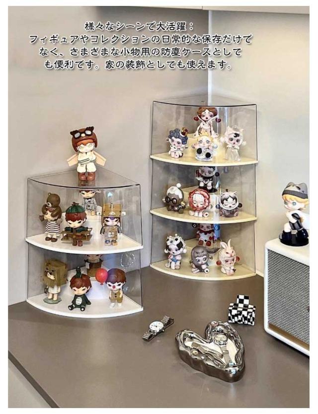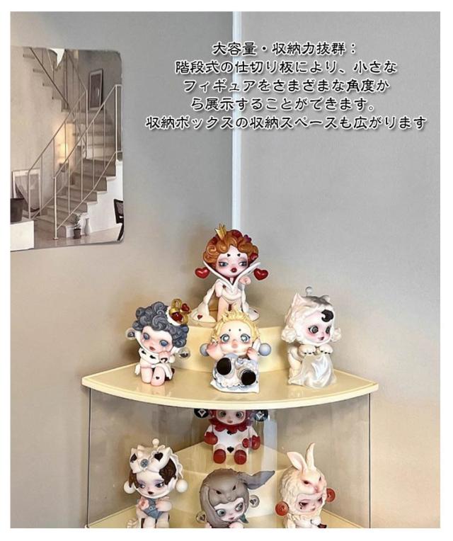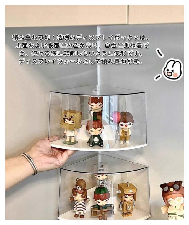 | 卓上コーナータイプのコレクションケース。【2個セット】 透明素材採用:コレクションケースの各側面は透明素材を採用なので、人形ディスプレイがすぐにはっきり見えます。 大容量・収納力抜群:階段式の仕切り板により、小さなフィギュアをさまざまな角度から展示することができます。収納ボックスの収納スペースも広がります 積み重ね可能:透明のディスプレイボックスは、上面および底面に凹凸があり、自由に重ね着でき、傾ける際に転倒しないように便利です。ディスプレイウォールとして積み重ね可能。 様々なシーンで大活躍:フィギュアやコレクションの日常的な保存だけでなく、さまざまな小物用の防塵ケースとしても便利です。家の装飾としても使えます。 透明のディスプレイボックスは、コレクション好きの友人へのプレゼントに最適です。 | |
