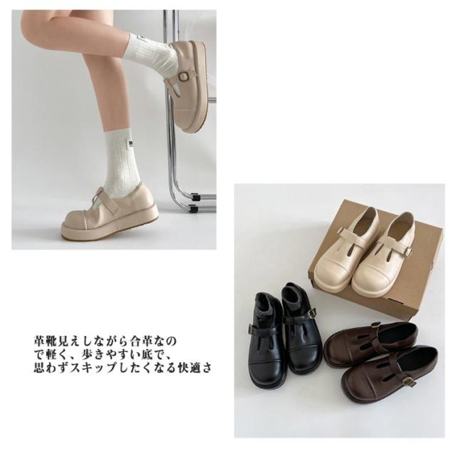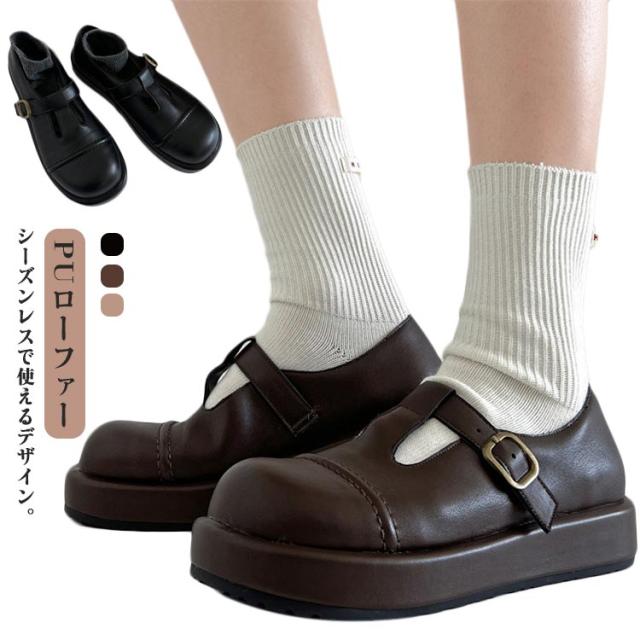 フラットシューズ ローファー レディース Tストラップシューズ カジュアルシューズ 楽ちん レトロ感 春秋 靴 可愛い 幅広 PUローファー シューズ 女性 PUシューズ