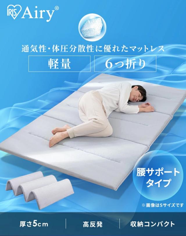 【開梱設置対象】マットレス セミダブル 六つ折り 折りたたみ 厚さ5cm 硬め 体圧分散 高反発 腰サポート 寝返り 軽量 コンパクト 収納 抗菌 防臭 通気性 湿気対策 敷布団 来客用 おりたたみ 寝具 アイリスオーヤマ エアリー Airy センターフィットタイプ MARS-C6SD *