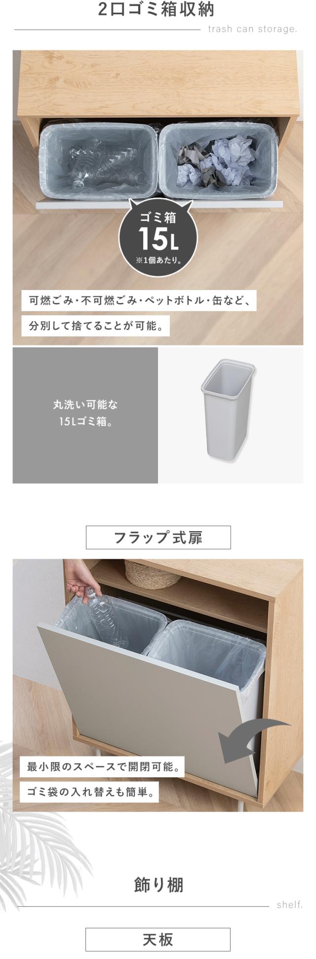 1個あたり約15Lのゴミ箱×2個収納。(ゴミ箱付属)