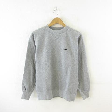 【中古】ナイキ NIKE トレーナー スウェット 長袖 ワンポイント ロゴ グレー M *T446 メンズ