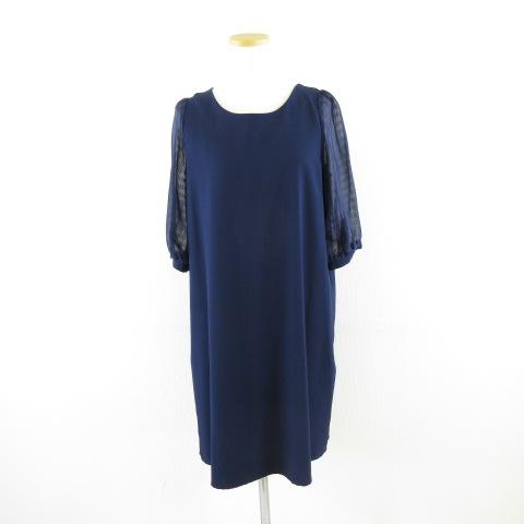 【中古】エンジェリーベ Angeliebe マタニティ ワンピース ミニ 五分袖 チェック 紺 S M *A75 レディース