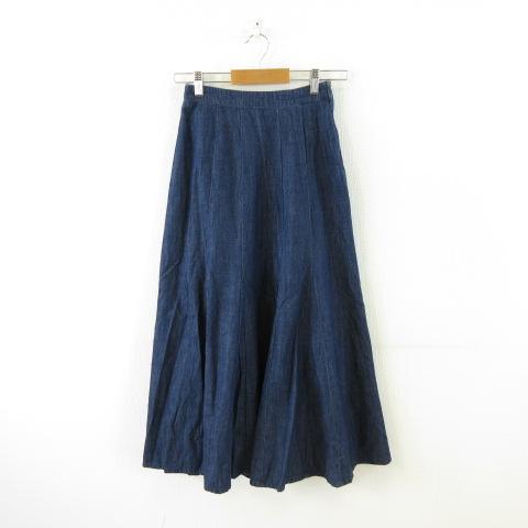 【中古】グラシア GLACIER フレアスカート デニム地 ロング 紺 M *A88 レディース
