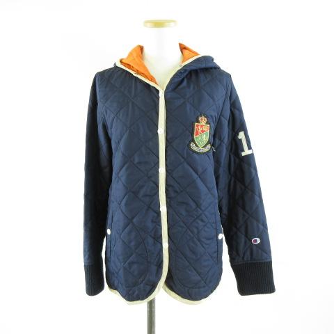 【中古】チャンピオン CHAMPION キルティングフーディジャケット 長袖 紺 M *A919 レディース