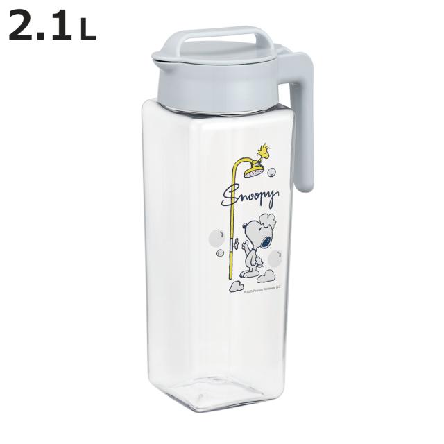 冷水筒 2.1L スヌーピー タテヨコスクエアピッチャー ( ピッチャー 日本製 横置き 熱湯OK スクエア型 キャラクター 洗いやすい 縦置き 防汚加工 熱湯 大容量 麦茶 お茶 水 キャラ )