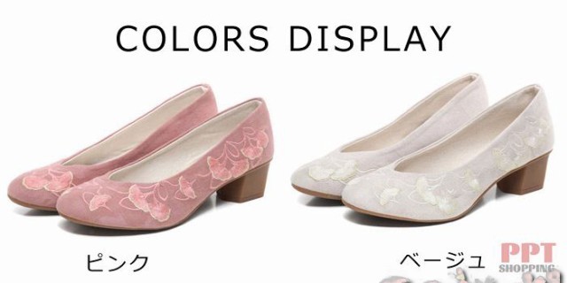 パンプス レディース 麻 リネン 刺繍 花 太ヒール 靴 かわいい 大きいサイズ シューズ お出かけ 痛くない 歩きやすい ローカット 夏靴