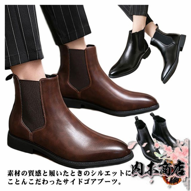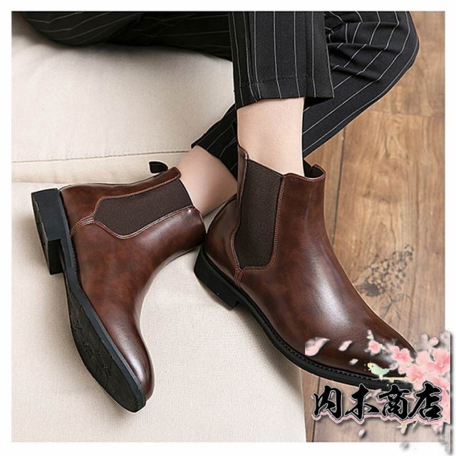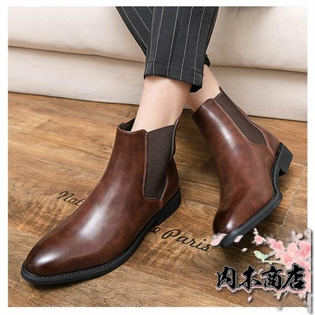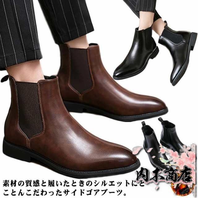 即納OK レビュー高評価 おしゃれ ドレスシューズ 紳士靴 ブラック メンズ 防滑 チェルシーブーツ サイドゴア 茶 ブラウン 黒 合成皮革 サイドゴアブーツ ラウンドトゥ PUレザー カジュアル 秋 歩きやすい ショート 履きやすい 冬 在庫わずか 冬物