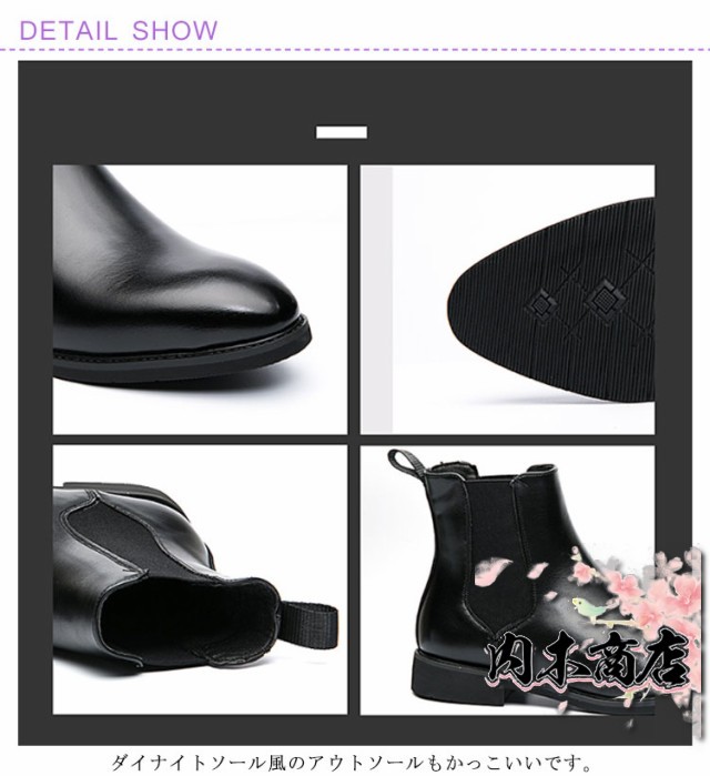 | 素材の質感と履いたときのシルエットにとことんこだわったサイドゴアブーツ。 ビジネスシューズにもカジュアルシューズにも使える万能タイプ。 アッパーは本革の質感に近い合成皮革を使用。 中敷は全体的にクッション性があるカップインソールを採用。 ダイナイトソール風のアウトソールもかっこいいです。 | |