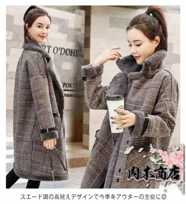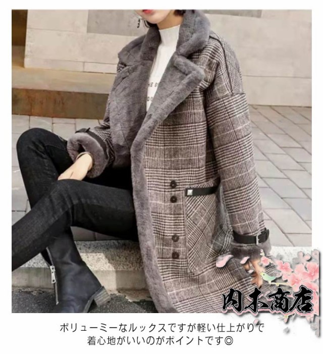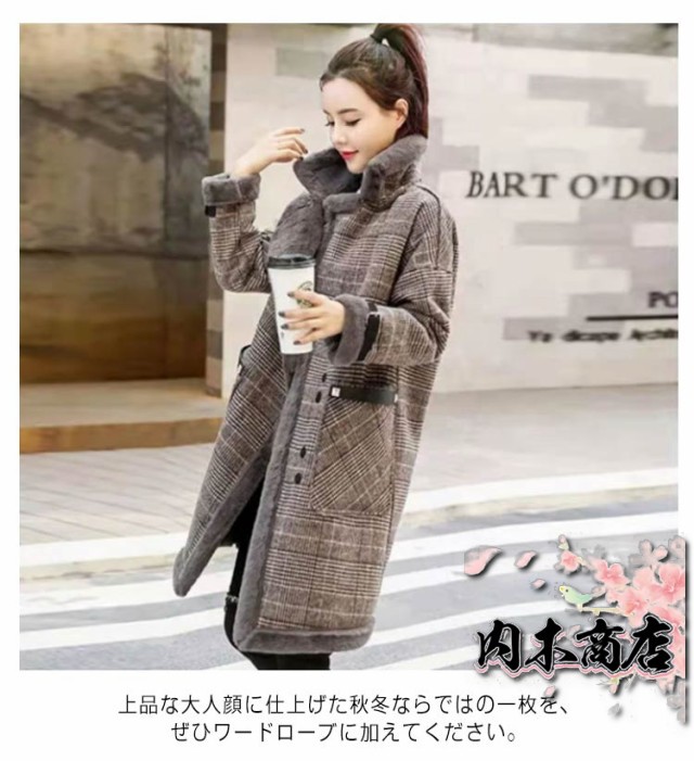 人気急上昇 レビュー高評価 レディース ボア 羽織り アウター ゆったり 秋冬 厚手 ムートンコート もこもこ ジャケット あったか グレンチェック ボアコート 裏ボア 暖かい ロングパーカー フェイクファー 長袖 チェスターコート フェイクムートン 冬用