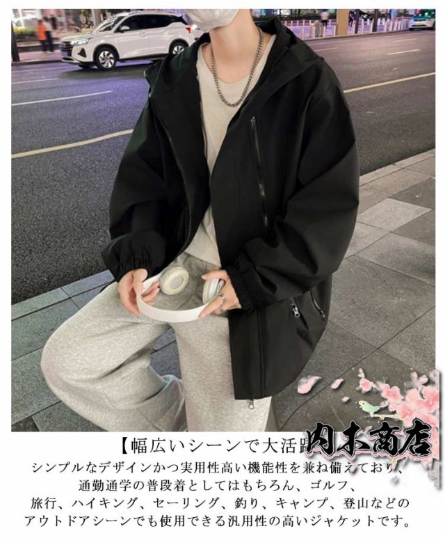 | 男女兼用!ゆったりとしたサイジングで仕上げた、さっと羽織れるマウンテンパーカー。 【表地・防撥水・防汚性】表地はしっかりとした頑強な撥水防汚通気素材を採用して、悪天候に体を乾燥し快適に保ちます。水滴を弾いてくれるので、多少の雨や風にも対応しアウトドアシーンでも活躍してくれます。 【ストリートなデザイン】今シーズンの若者の着用スタイル、個性とトレンドに沿った質感と形状のデザイン。 【幅広いシーンで大活躍】シンプルなデザインかつ実用性高い機能性を兼ね備えており、通勤通学の普段着としてはもちろん、ゴルフ、旅行、ハイキング、セーリング、釣り、キャンプ、登山などのアウトドアシーンでも使用できる汎用性の高いジャケットです。 | |