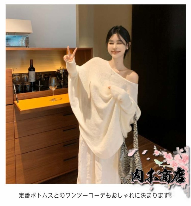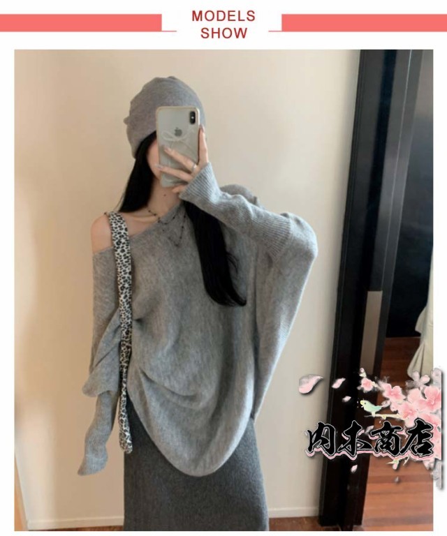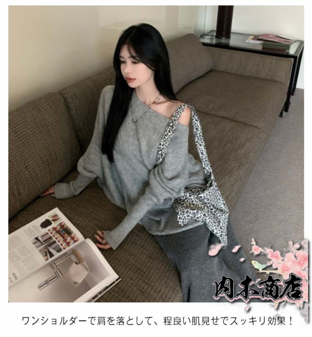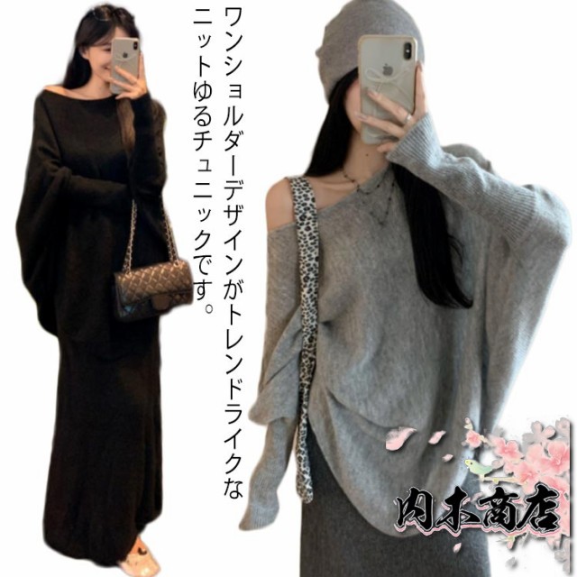 即納OK 数量限定入荷 シンプル 体型カバー レディース 季節限定アイテム 店長太鼓判 肩開き ニットチュニック セーター 春 ミディアム丈 SNS話題 きれいめ 大人 秋 トップス アシンメトリー ワンショルダー 無地 在庫わずか プルオーバー 冬物