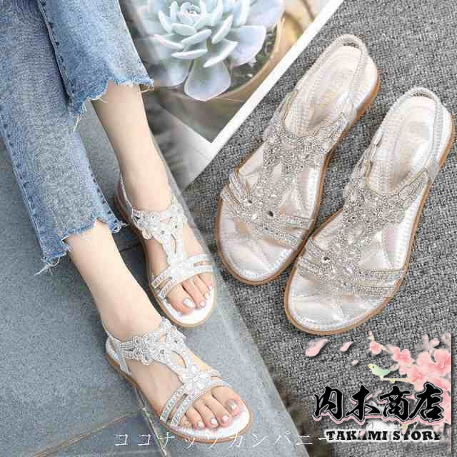 サンダル レディース 春夏 履きやすい フラットサンダル グラディエーター トングサンダル シューズ ミュールサンダル ラインストーン ビ