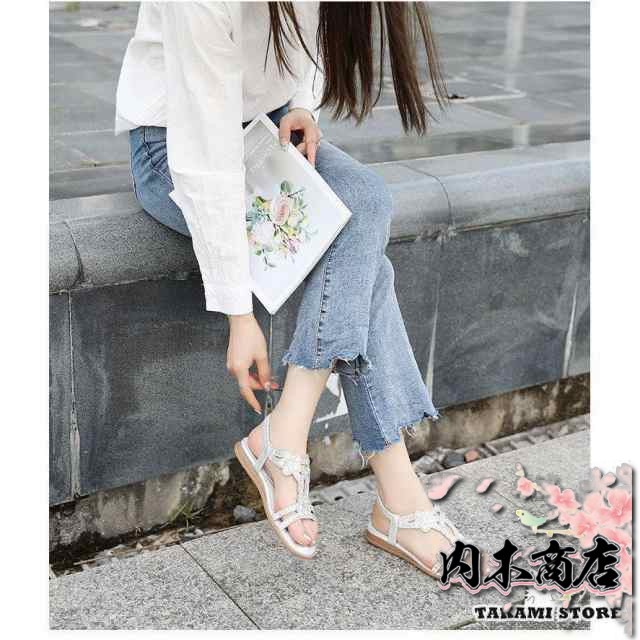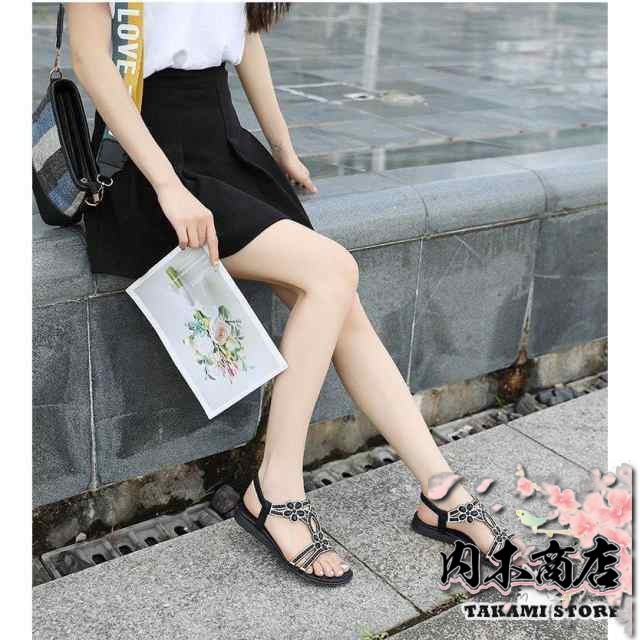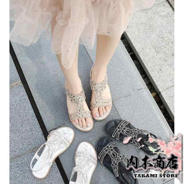 【商品説明】:サンダル レディース 春夏 履きやすい フラットサンダル グラディエーター トングサンダル シューズ ミュールサンダル ラインストーン ビーチサンダル 美脚 カジュアル 大きいサイズ 2色