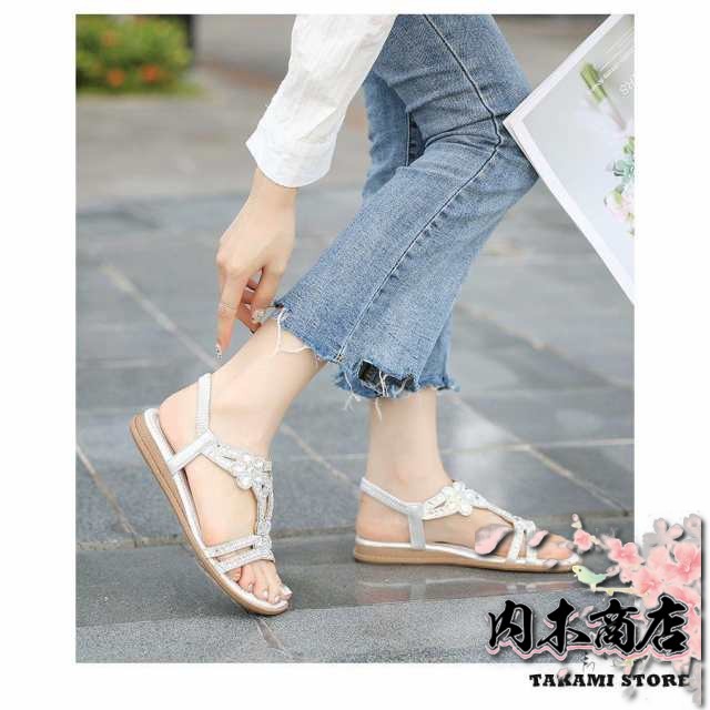 注目ランキング上位 売上急増中 シューズ レディース 毎日使える便利品 トングサンダル 春夏 ビ サンダル 収納便利 グラディエーター ラインストーン 履きやすい ミュールサンダル フラットサンダル 即納対応中 送料無料